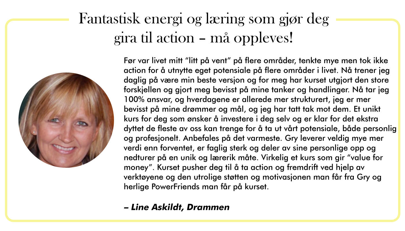 Jeg vet at metoden og verktøyene jeg lærer bort kan skape resultater for deg som er motivert for å gjøre dette til ditt beste år. Du vet at du vil ha endring i livet, at du har mer å by på og at du er villig til å stå på når du først vet hva du vil. Du er vet du kan bli en bedre versjon av deg selv.