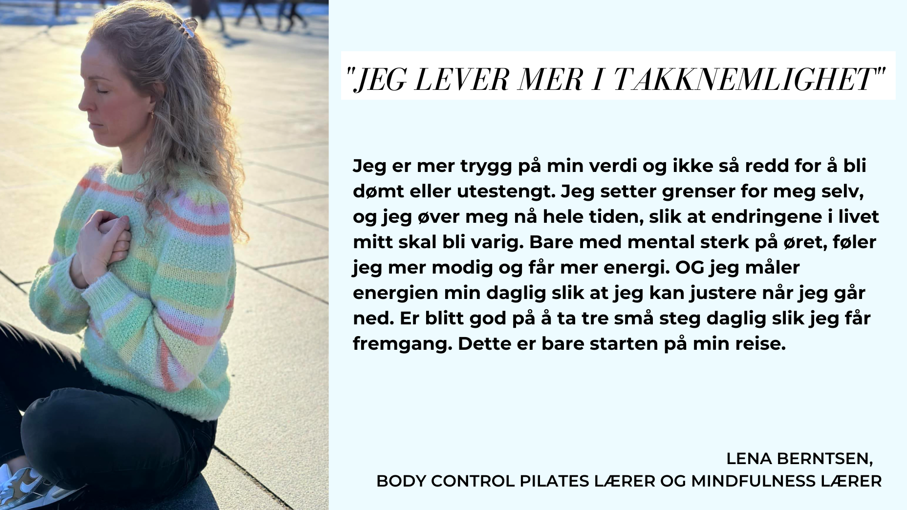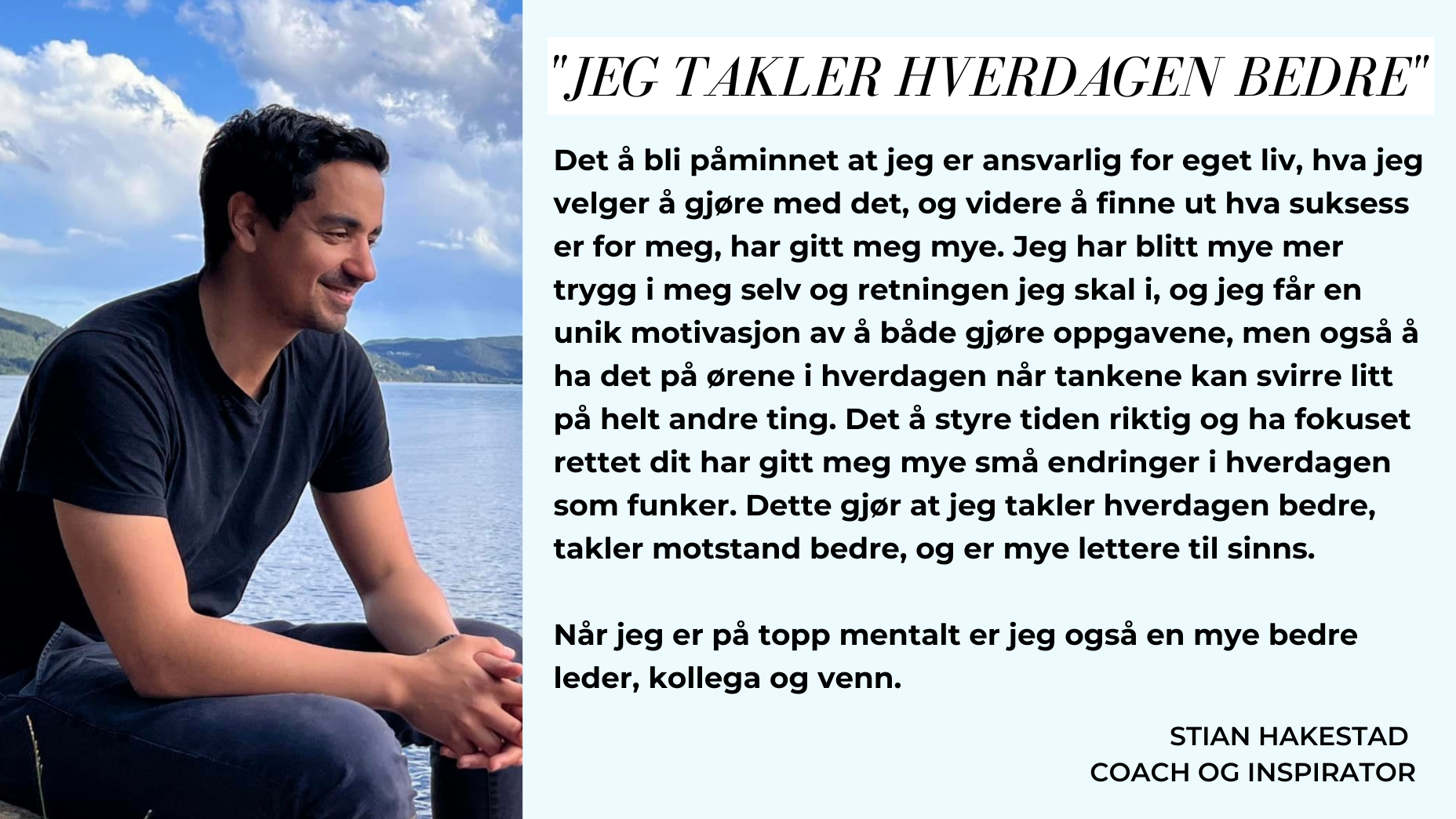 Jeg vet at metoden og verktøyene jeg lærer bort kan skape resultater for deg som er motivert for å gjøre dette til ditt beste år. Du vet at du vil ha endring i livet, at du har mer å by på og at du er villig til å stå på når du først vet hva du vil. Du vet at du kan bli sterkere mentalt.