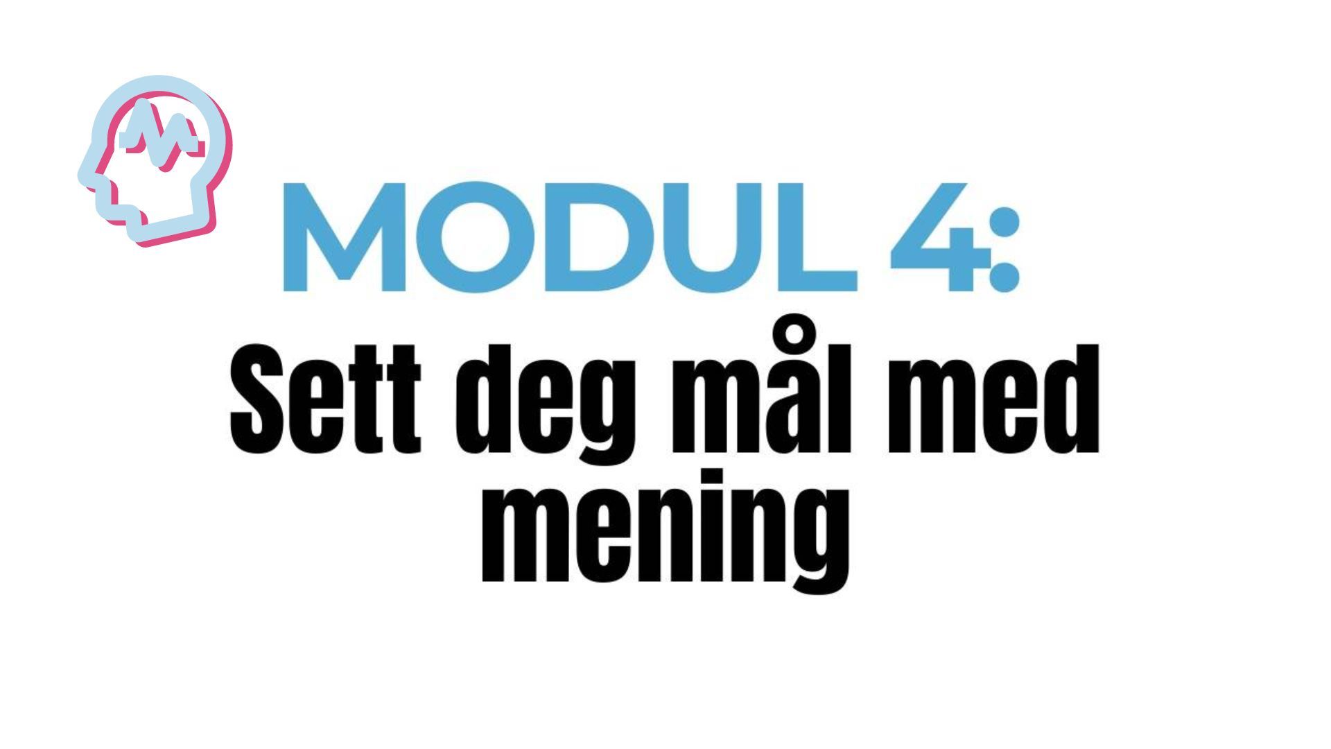 Mennesket blomstrer når vi har en lysende fremtid - og vi trenger mål med mening for å ha lykkefølelsen. I denne modulen vil du sette deg mål som inspirerer og motiverer deg til vekst. Du vil bygge selvtillit og finne ut hva som gir deg suksess slik at du kan ta action på de riktige tingene.