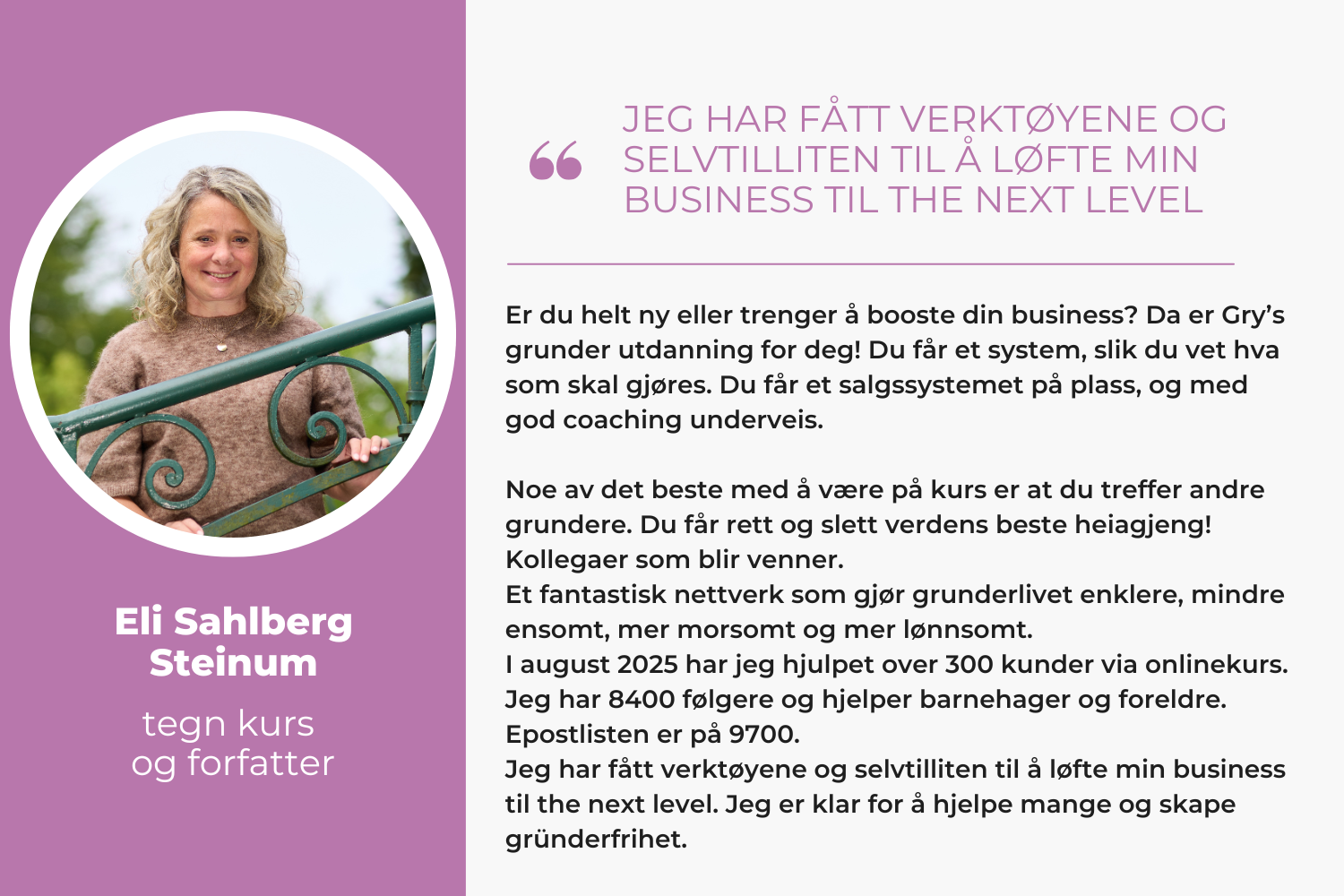 Jeg lover deg: Drømmekundene dine venter på at du skal satse. De venter på å få hjelp av akkurat DEG. Din erfaring. Din kunnskap. Dine talenter. Du må tørre å gi av deg selv. Først da endrer livet ditt seg. Det fortjener du. Det fortjener kundene dine. Du vet kanskje ikke hvordan det skal bli en business ut av det enda.... DU ER PÅ RIKTIG PLASS.