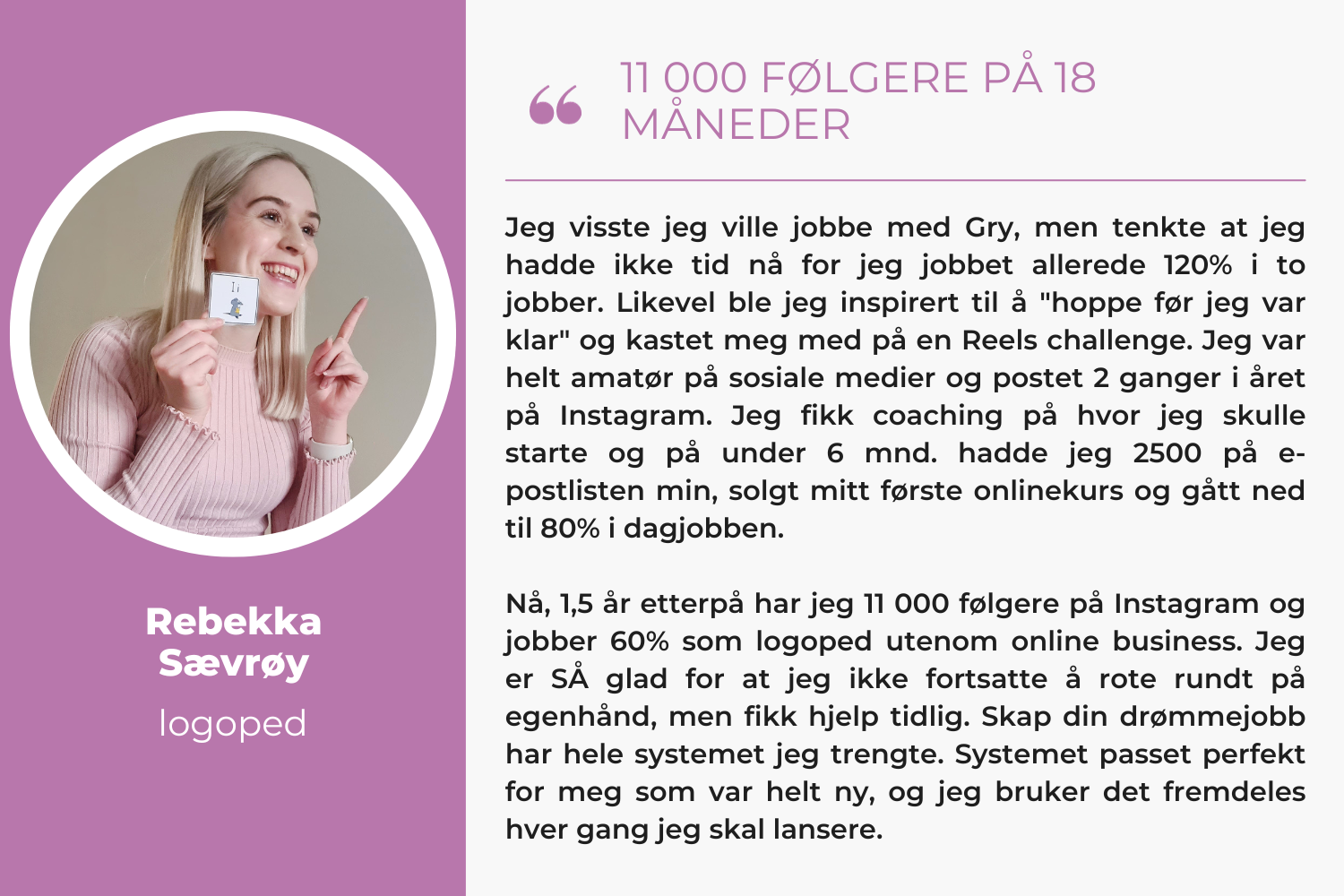 Ved å legge inn navn og e-post samtykker du i å motta e-post fra Gry ukentlig med gratis inspirasjon og tips om hvordan du lykkes på nett. DU kan melde deg av når du vil ved å trykke unsubscribe.Vi vil aldri dele e-posten med noen.