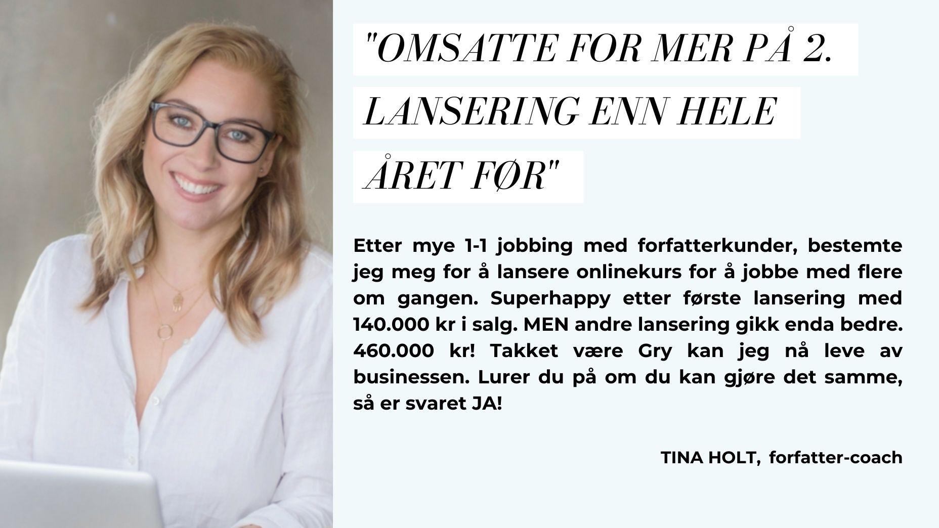 Du får oppskriften jeg selv har brukt for å lansere 4 produkter, som alle nådde 7-siffret salg - de samme stegene jeg lærer til kundene mine som har skapt seg grunderfrihet. Prosessen er den samme for alle - og jeg hjelper deg gjennom stegene hele veien.