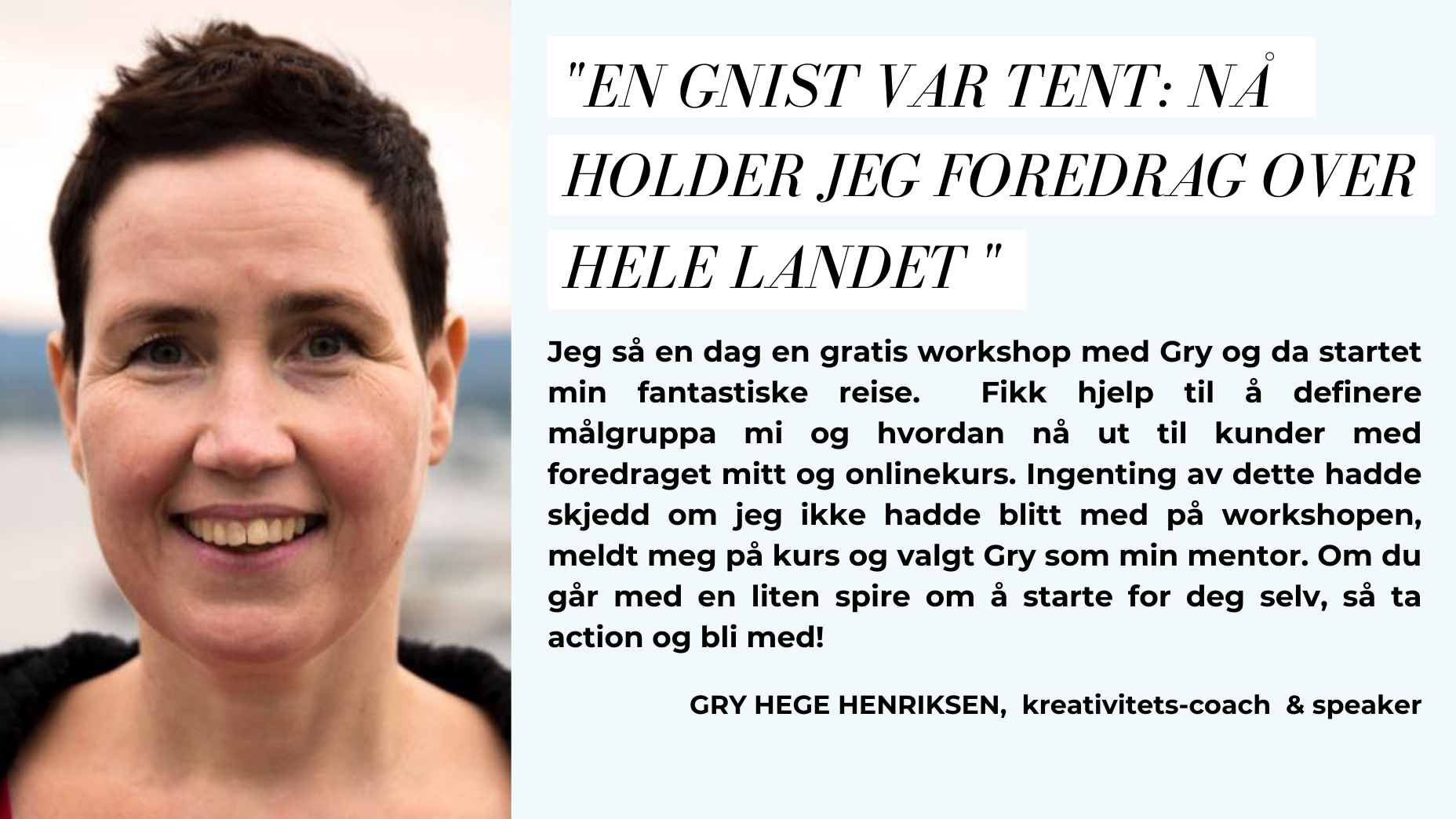 Ved å legge inn navn og e-post samtykker du i å motta e-post fra Gry ukentlig med gratis inspirasjon og tips om hvordan du lykkes på nett. DU kan melde deg av når du vil ved å trykke unsubscribe.Vi vil aldri dele e-posten med noen.